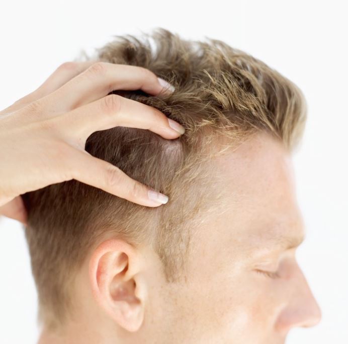 정수리 부분을 양 엄지손가락을 이용하여 꾹꾹 지압해줍니다.