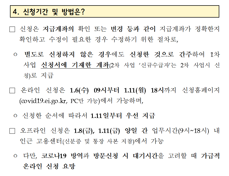 오프라인 신청은 가까운 고용센터에서 2020.1월8일 - 2020.1월11일 까지 가능하시니 영업점 시간 참고하셔서 방문하시기 바랍니다.