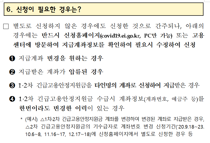 2. 1.2차 긴급고용안정지원금을 타인명의 계좌로 신청하여 지급받은 경우
