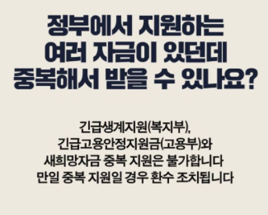1. 긴급복지지원 생계급여 수급자 등 다른 정부 지원금을 중복하여 지급받은 경우 제외됩니다.