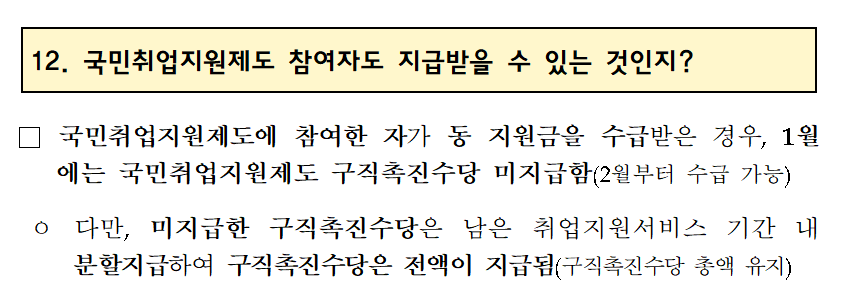 이번 긴급고용지원금 (3차 재난지원금) 1일부터 시행된 국민취업제도인 구직촉진수당과 같은 달 동시에 수령하실 수 없는점 참고하시기 바랍니다. 소상공인 버팀목 자금과 중복수급되지않으니 이 조항도 확인해보세요.